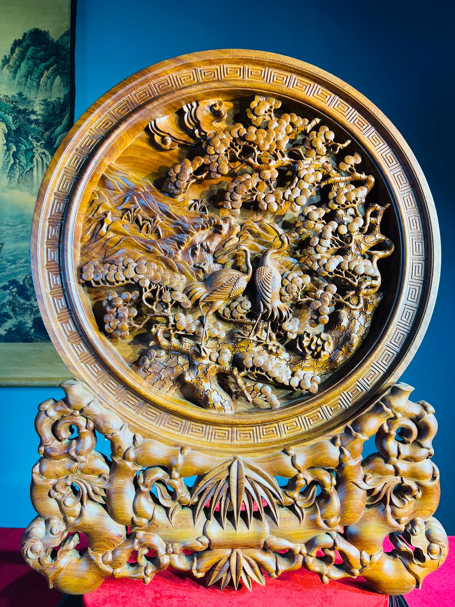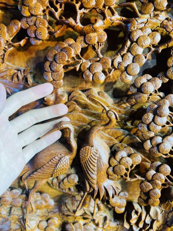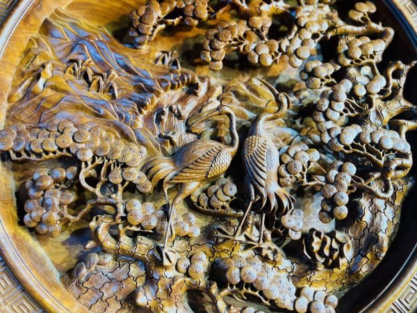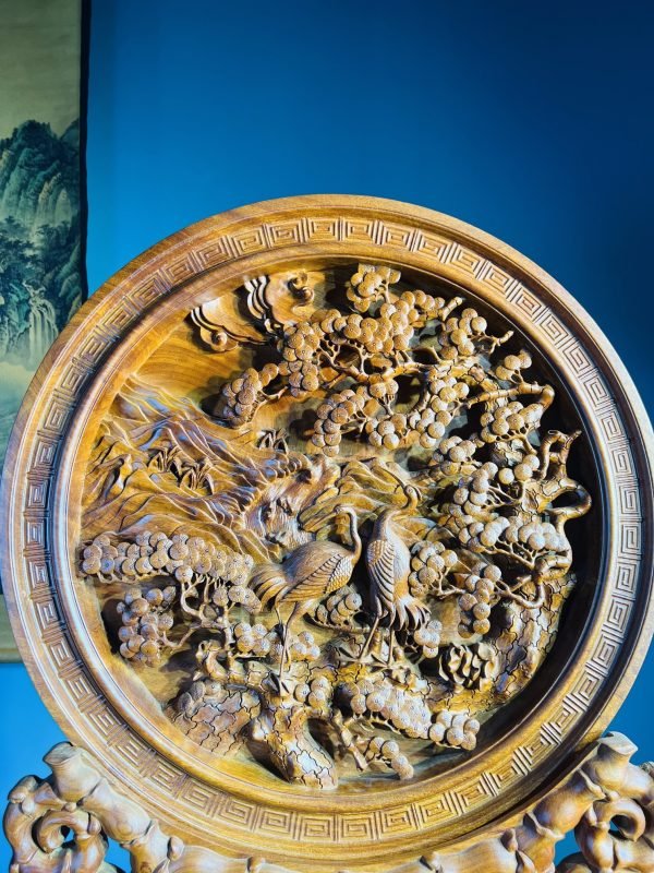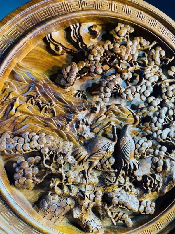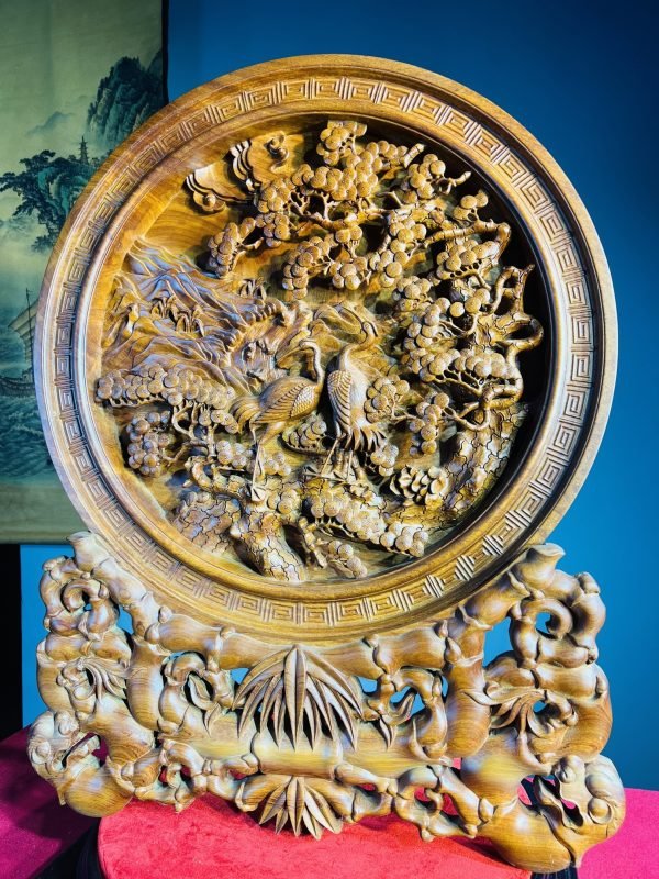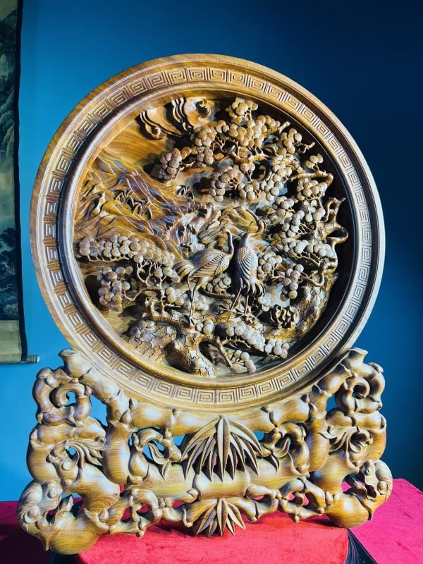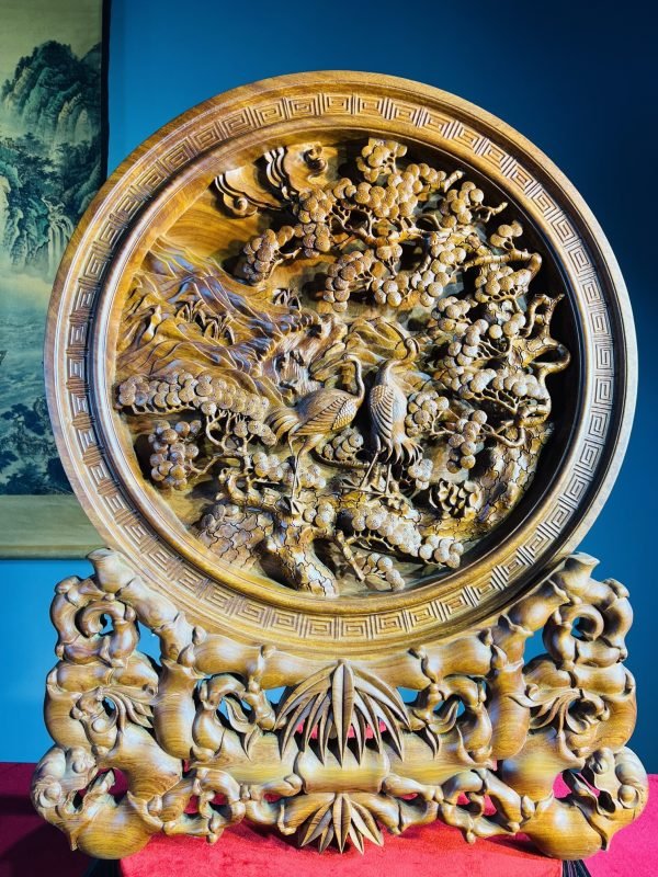 Một trong những thiết kế tiêu biểu, nổi bật tại cửa hàng đồ gỗ Vinh Vượng phải kể đến đầu tiên là Đĩa Gỗ Tùng Hạc Diên Niên. Mang trong mình thiết kế độc đáo, tinh xảo đến từng chi tiết dù là nhỏ nhất cũng chất liệu gỗ quý, Tác phẩm này gây cuốn hút người xem ngay từ lần nhìn đầu tiên.